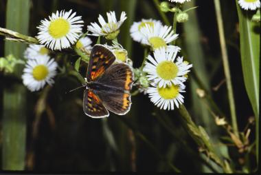 分布は県内のほぼ全域に分布。ただし、丹沢や箱根のブナ林では見られない。草地や畑などにいて、地上低く飛び回り、タンポポ類、ヒメジオンなど各種の花を訪れる。幼虫はギシギシ類を食べる。