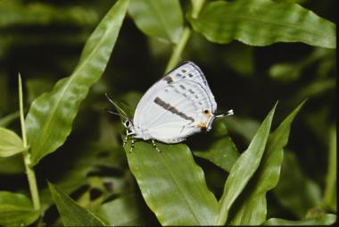 分布は県内のほぼ全域に分布。ただし、地域によっては局地的。林内や林の縁にいて、昼間は不活発だが、朝と夕方に活発に飛び回る。たまにクリなどの花を訪れる。静止時ははねを閉じる。ゼフィルスの1種。幼虫はコナラなどを食べる。