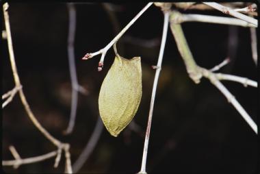 前翅の長さ50mm内外。県内では平地から山地まで見られるが、都市化が進むと姿を消す。まゆはあざやかな緑色で、冬の雑木林で見られるが、良く目立つ。