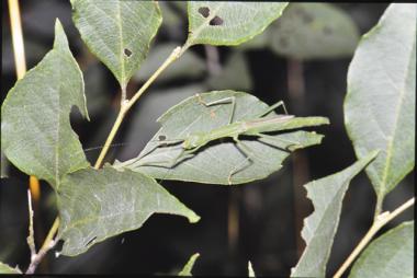 体長メス42~54mm。オスは未知。ブナ科の樹上に生息し、単為生殖を行う。体は全体が緑色で腹部は青みがかった白色。