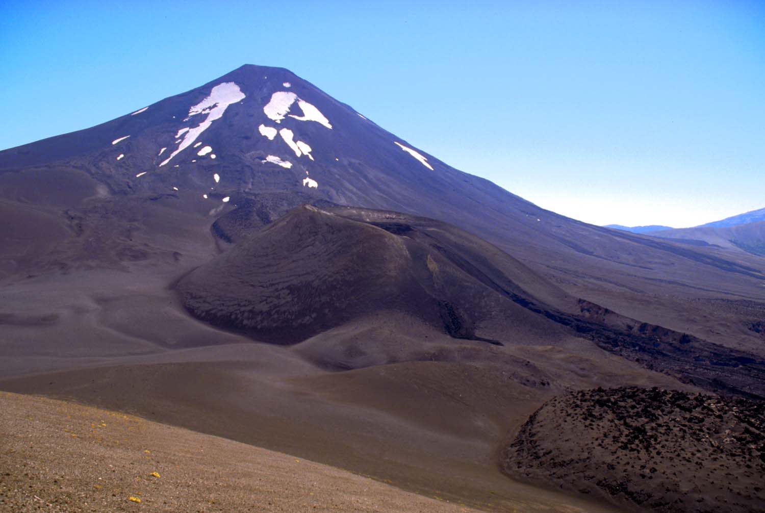 チリの首都サンチアゴの南、約550kmにある第四紀の成層火山。標高は2865m、火山体の高さは約1000mである。きれいな円錐状の火山体をしている。主に玄武岩からなるが、安山岩、デイサイト質の溶岩もみられる。1988年から89年にかけて北側の斜面で、最新の火山活動があり、大量の溶岩が流出した。その火口はスコリア丘となっている。